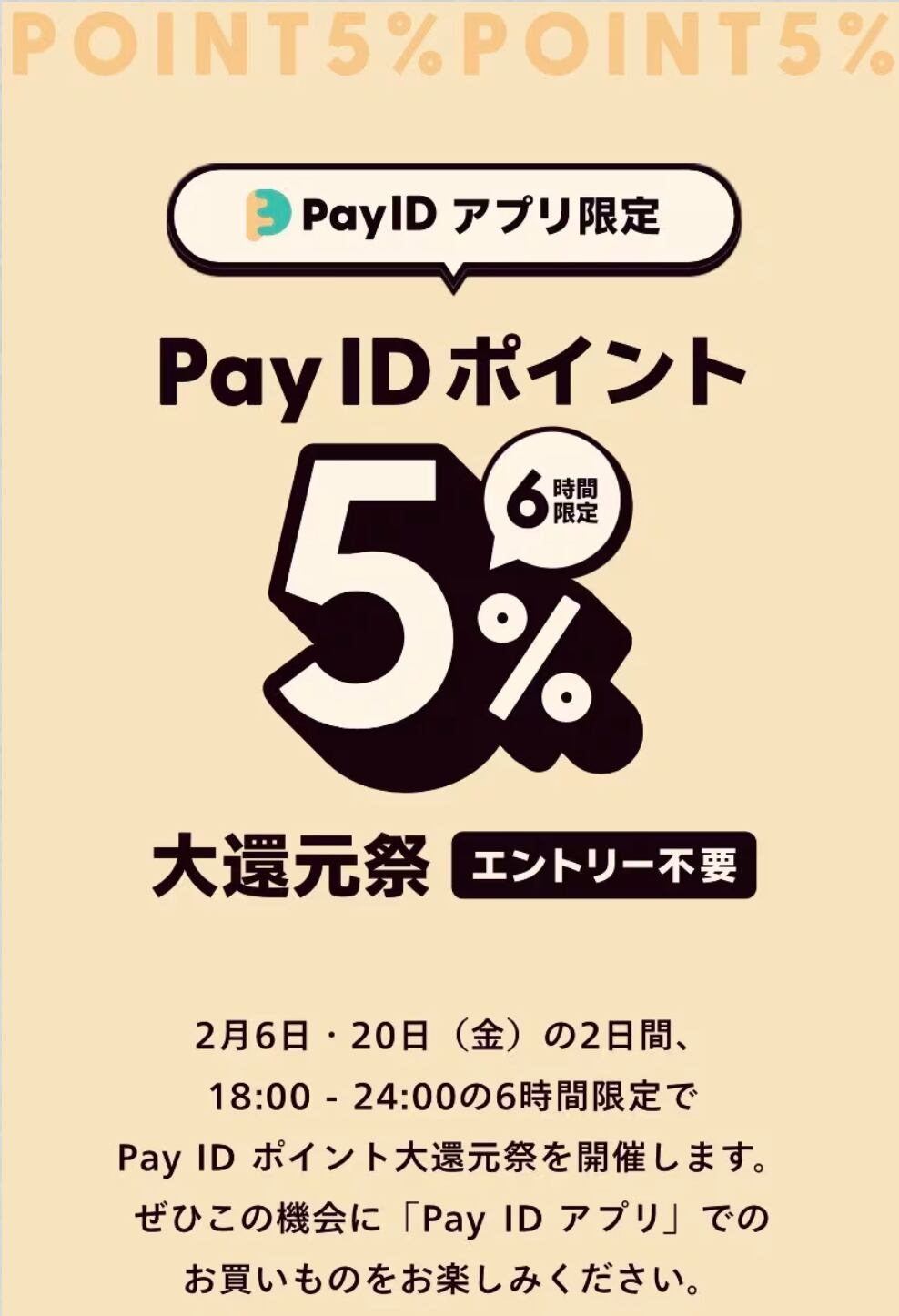 「Pay ID ポイント」5%還元(上限:1つの決済あたり30,000ポイント)